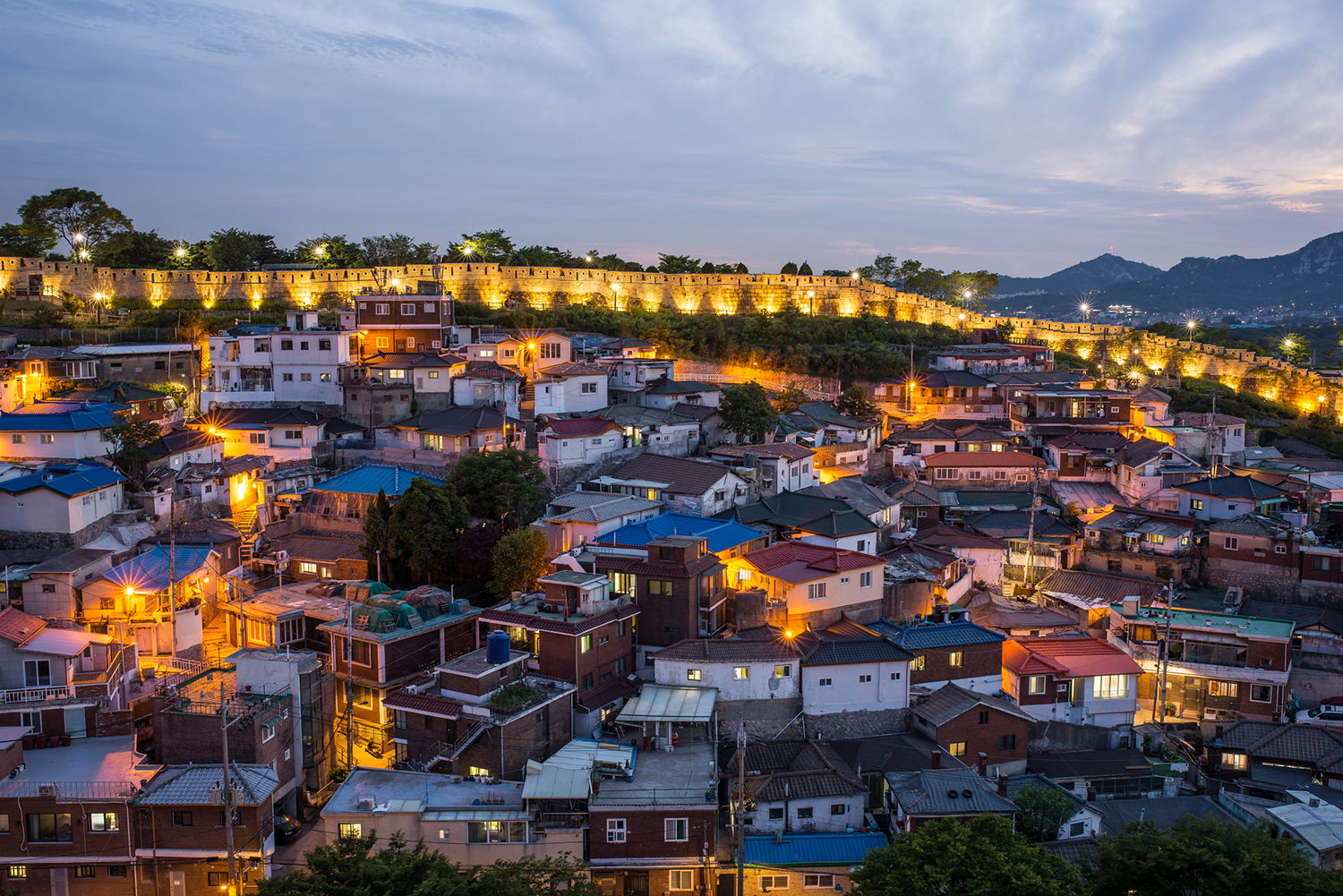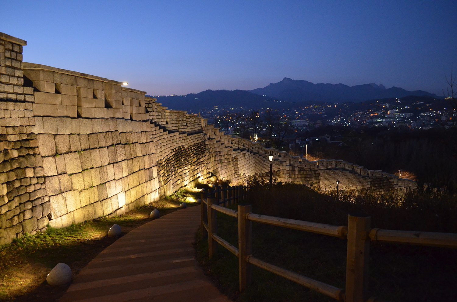 해가 지고 어스름해질 무렵이면 도심 속 성곽, 낙산공원에 올라보자. 환하게 불밝힌 대도시 서울의 밤 풍경이 한 눈에 들어오고 우뚝 솟은 남산서울타워도 손에 잡힐 듯 선명하게 눈에 들어온다. 낙산공원은 산의 모양이 낙타를 닮았다 해서 ‘낙산’이라 이름 붙여졌으며, 일명 낙타산으로도 불린다. 100m를 조금 넘는 낮은 산이지만 대학로와 동대문 등 유명 관광지가 가깝고, 서울 시내를 한눈에 내려다볼 수 있는 전망 좋은 산책길이 있어 야경 명소로, 야간 데이트 코스로도 인기가 높다. <더킹투하츠>, <건축학개론> 등 여러 영화와 드라마의 촬영지로 알려져 외국인 관광객들에게도 유명하다. 특히 낙산은 일몰 시간에는 노을빛으로 물드는 도심의 환상적인 뷰를 볼수 있으며, 성곽과 화려한 도심의 전경이 어우러진 독특한 야경을 만날 수 있다.